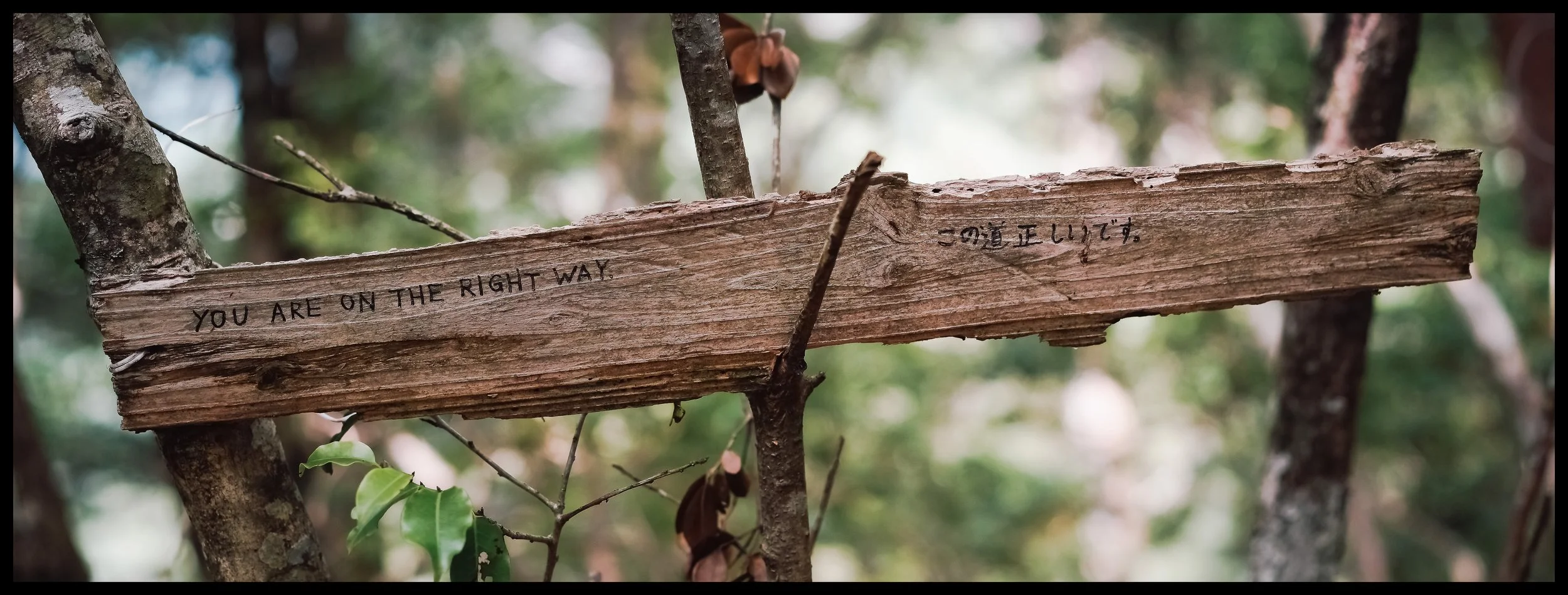 A helpful handmade sign on the Kumano-kodo pilgrim path, Wakayama, Japan, 2015